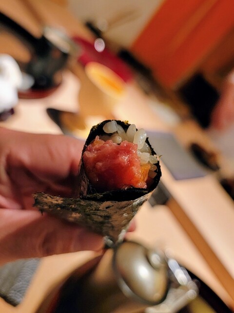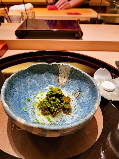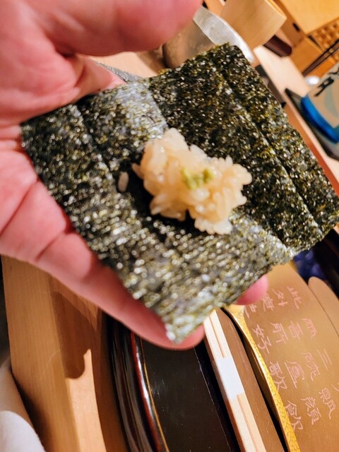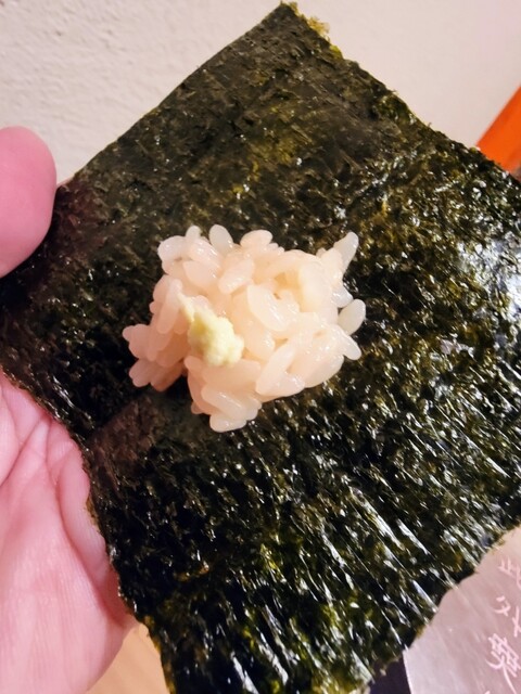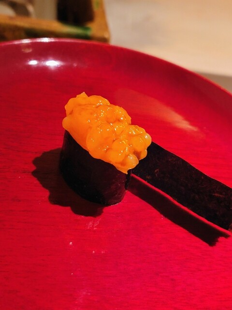 ウニは手巻きにせず海苔に乗せて手渡しされた。