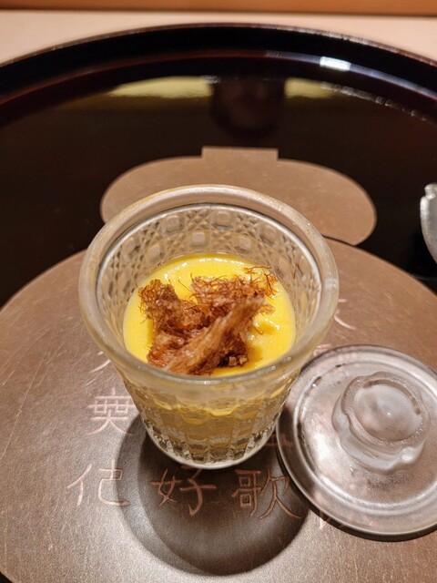 ・北海道の甘い月光百合根の茶碗蒸しに自家製カラスミ
