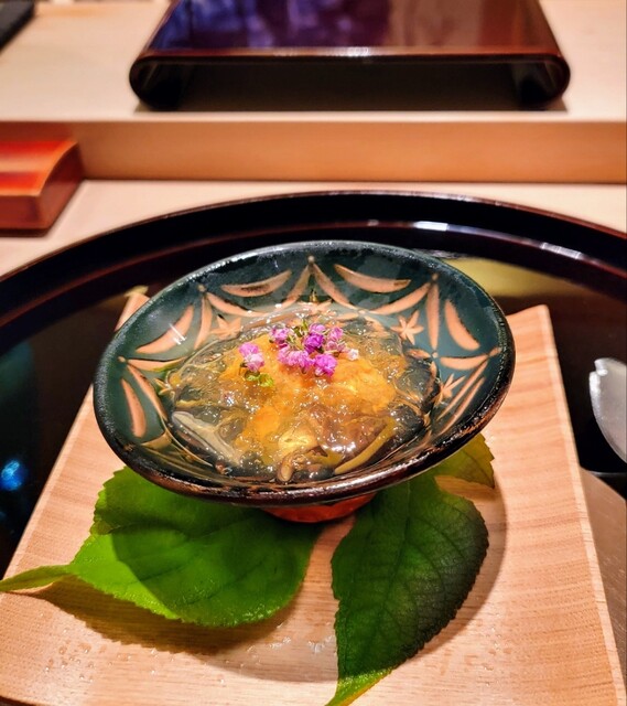 蒸し鮑は肝ソースでいただいた。肝ソースには