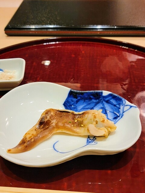 ミル下と呼ばれるミル貝の本体を炙って、少しの七味を振って