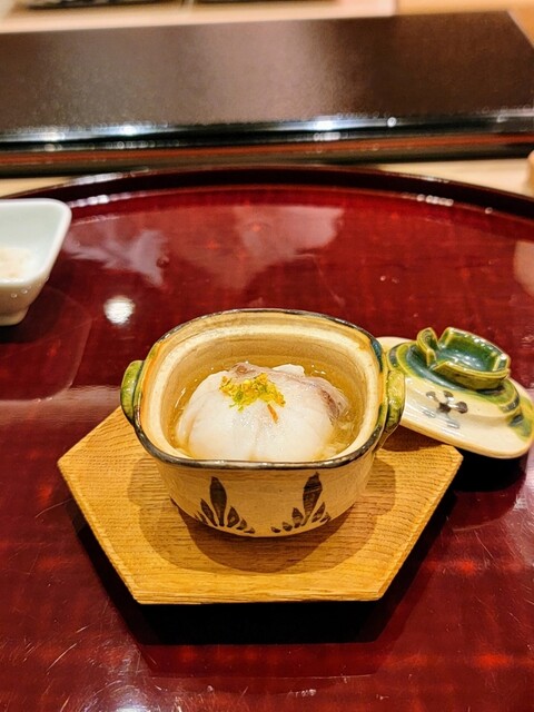 ・天草の虎ふぐ白子がクエの旨味たっぷりの出汁に