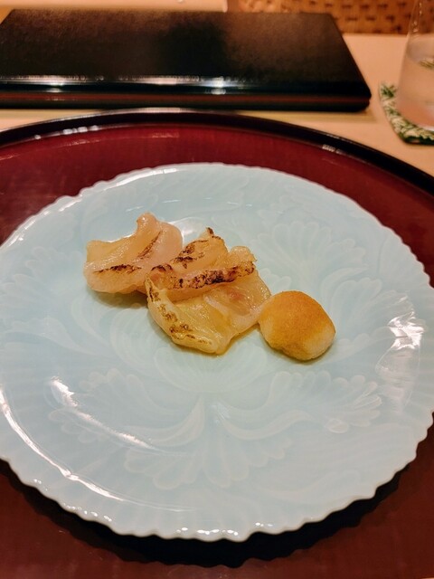 ボタン海老の炭火炙り、和歌山の三ツ星醤油