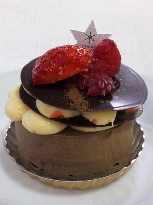 チョコレートの生地とクリームの部分はカカオが効いています。豆っぽさと、苦味、少しの酸味があります。