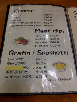 洋食・中華・おつまみとバラエティーにとんだメニューが並びます