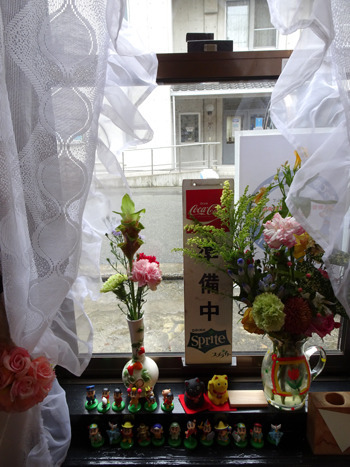 カウンター周りにもレトロな雰囲気な小物たちが並んでいます。