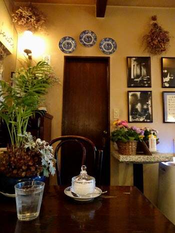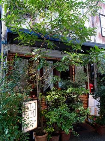 路地にたたずむ緑に囲まれた素敵な外観が印象的な喫茶店です。
