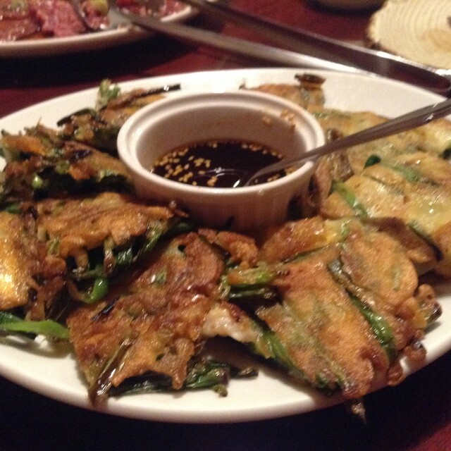 焼肉屋さんでサラダも食べたいという時に、こちらのシーザーサラダを頼んで見たら、カニもたっぷりでウレシイ。量も多く、期待以上です。もちろん、チヂミも美味しく、大好きなチャプチェもオイシイ。