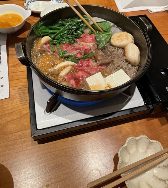 大和牛上すき焼き120g(2枚)コースで予約していましたが、その場でコースの確認をされ、変更可能。