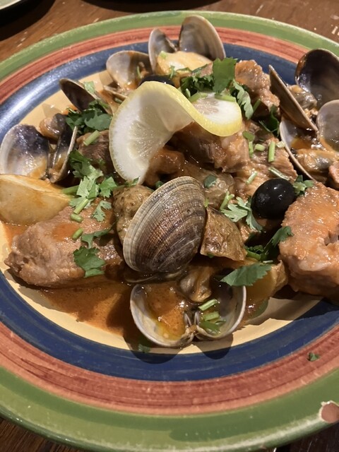 豚肩肉とアサリのアレンテージョ風。山の幸と海の幸組み合わせた素晴らしい一皿