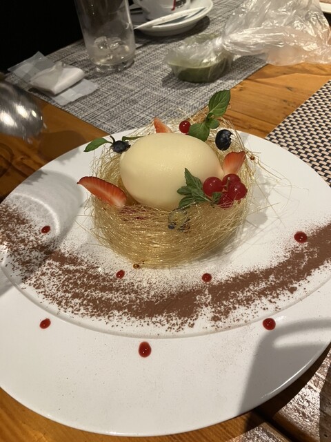 オリジナルデザートのチャッチャコーラの巣。食べるのが罪深いような芸術的スイーツ