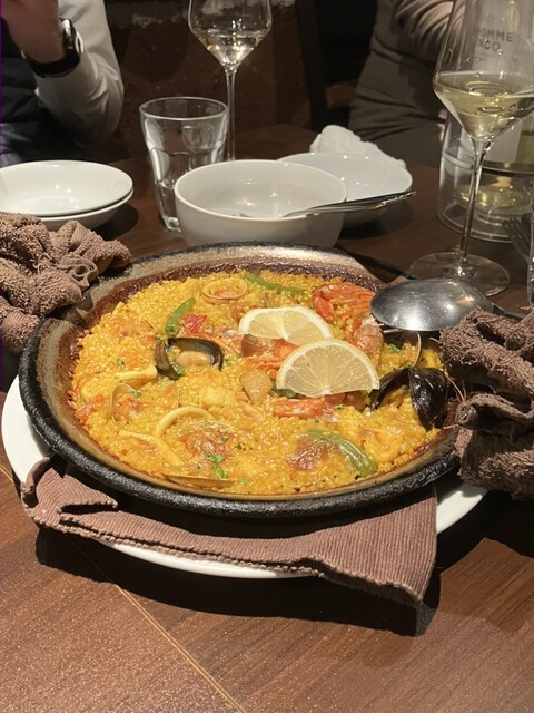 魚介と鶏のミックスパエリア。正統派で美味。