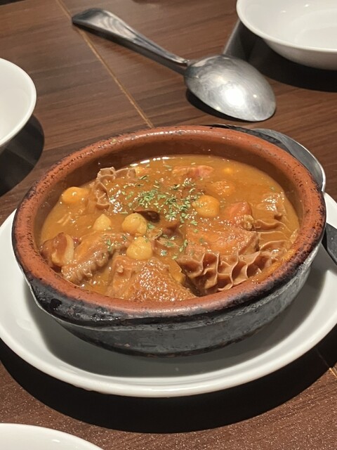 カジョス。マドリード風ハチノス煮込み。下拵えの妙で臭みがなく、モツ苦手でも美味しいと思う。