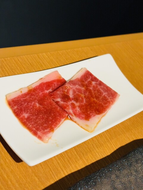 ・料理長おすすめの和牛希少部位2種が出ます。サンカクとカメノコという部位で味わい深く濃厚なお味でした。