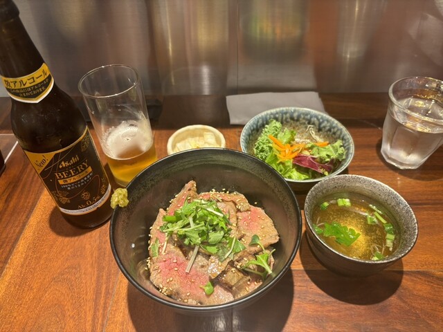 ・赤身ステーキ丼:100gにしたけど、しっかりお腹いっぱい。少し甘みのあるタレがお肉に合ってて白胡麻も効いて美味しい。お肉が柔らかい、厚みもちょうどいい。色も綺麗。タレの染みたご飯一粒一粒うまい。お米の品質がいい。味わいたいけど、美味しくて止まらないのを抑えるのに必死。