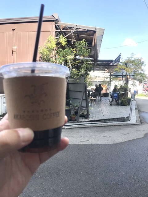 店の横に貴重な喫煙所があり、椅子もあり、アイス珈琲を頼んで屋外でクールダウンしました。