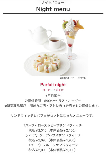 平日夕方のParfait nightがおすすめ