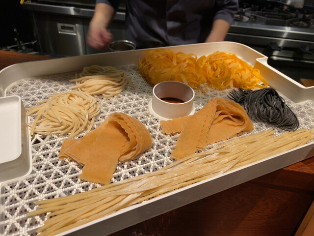 何種類ものパスタを同時に調理されていて、また同じパスタを複数回作る必要があるので、シェフにとっては大変そうですがお客さん側からしたら大変嬉しいサービスです。