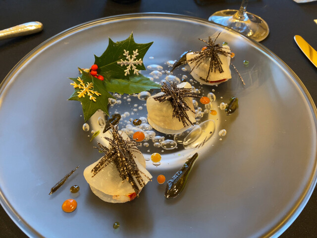 この時期だけのクリスマスのスペシャルコースにワインペアリングでお願いしました。
