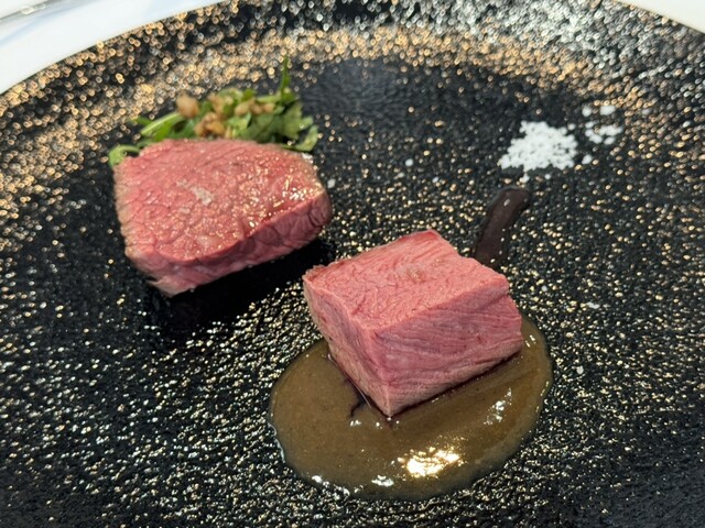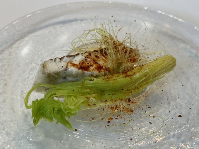 一品目から想像以上の素晴らしさにビックリしました。スミイカは身の部分は余計な水分はなく旨みが強く、イカ墨のパン部分もホロホロな食感です。イカ墨のパンとしては初めて頂く食感でしたが、大変ワインに合う美味しさでした。
