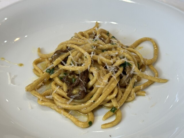 ウニのパスタは下に貝が入っていて磯感がスゴイ。このお料理には日本酒を出して頂けるあたりも、このお店の素敵なところかと思いました。