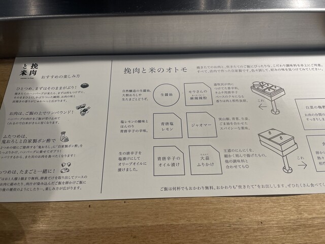 この値段でこれだけ旨い炭火ハンバーグが食べられるのはコスパ良過ぎですし、何よりも、お店の雰囲気がとっても良い!! 店員さんが皆さん楽しそう。 お肉をガンガン焼いてるので厨房は熱いのでしょうけど、皆さんニコニコテキパキ動いてて尊敬します。 カウンター席には煙が流れてくることもないですし。 感心しました。 また行きたいです。