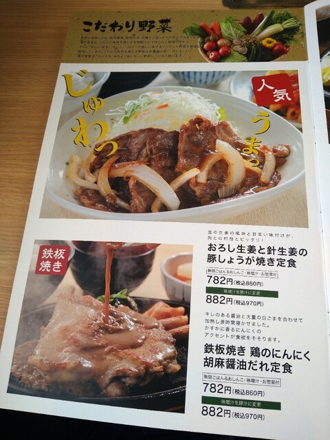 今回、ホッケ焼き定食と鶏のニンニク胡麻醤油定食を頂きました。