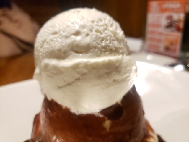 ピーカンナッツ入りのチョコブラウニーの上に巨大なバニラアイスに熱々なチョコソースをこれでもかっ!って程にぶっかけ、トップにゎ盛り盛りホイップ