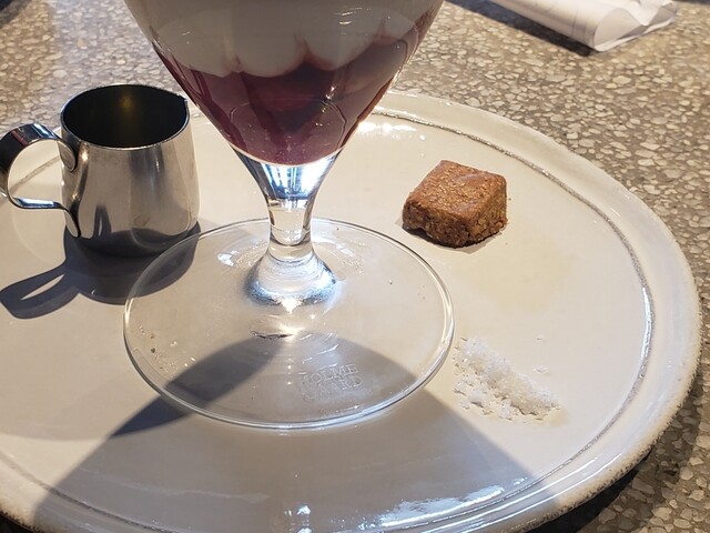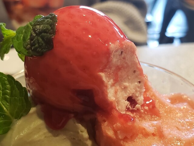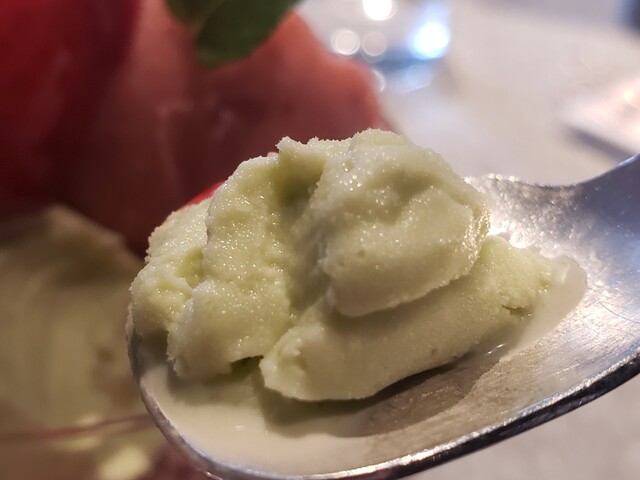 赤ワインビネガーソルベ/ピスタチオジェラート