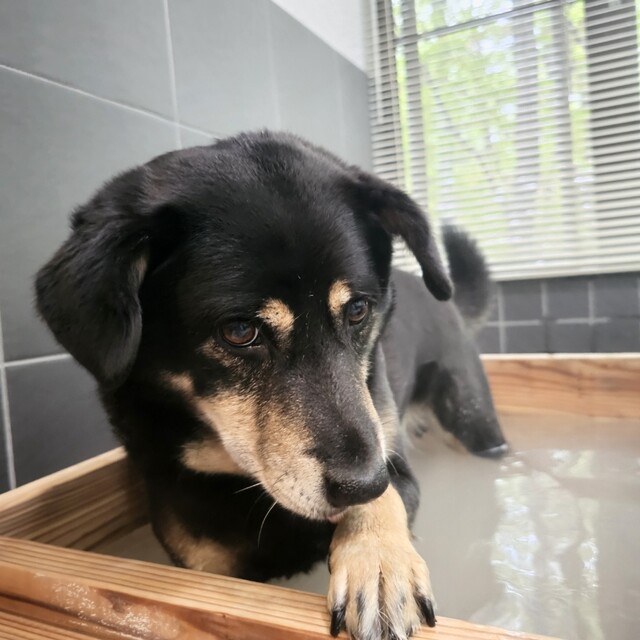 ワンコ初めての温泉タイム