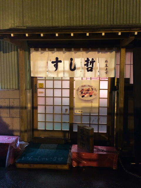 寿司屋とは思えぬ建物の一階に看板があり、暖簾をくぐり入るとカウンター12席ほどあったでしょうか、座敷テーブルが2席。