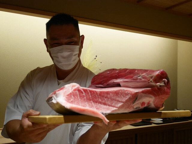 「大分県のアオリイカと赤雲丹の海苔巻」