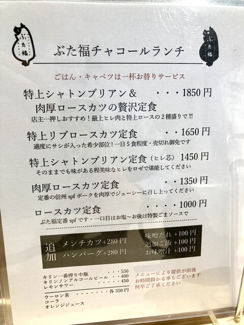 待ってる間に可愛い店員さんが注文を取りに来てくれたので、本日のオススメ”数量限定”の「ヒレ先のひとくちかつ定食」に欲張って通常¥380→250の煮込みハンバーグをつけてオーダー