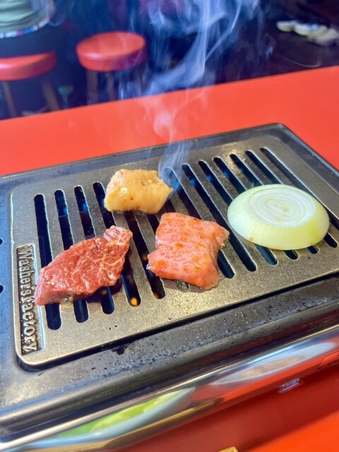 お肉はサシが綺麗に入ったカルビと厚切りのハラミ、野菜は玉ねぎとピーマン