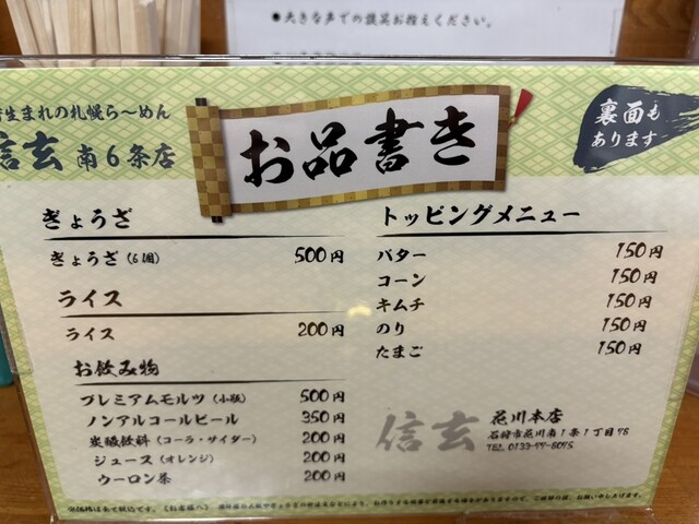 らーめん 信玄 南6条店(東本願寺前、資生館小学校前、山鼻9条/ラーメン)