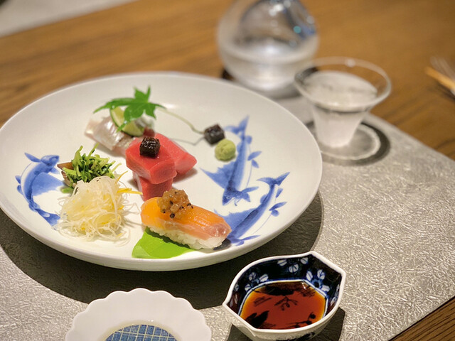 鮮 本鮪 縞あじ 富士の介握り あしらい彩り