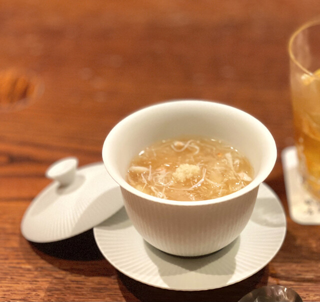 焼き目をつけた厚みのあるフカヒレは餡に絡んで蕩けるようにふわふわとして