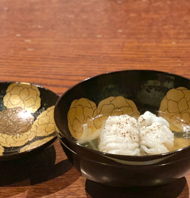 涼味を添える露の打たれた漆のお椀が日本料理のようにスッと出され