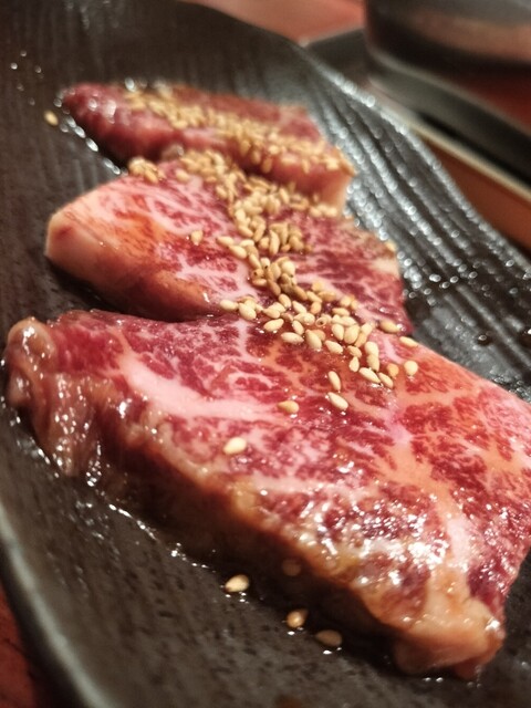 焼肉好きとしては、ハラミに注目したいが、「和牛ハラミ」(2000円くらい)がとてもよく、普通のハラミ(1000円切ってたと思う)も特製ミソをつけるとこれまた美味い。
