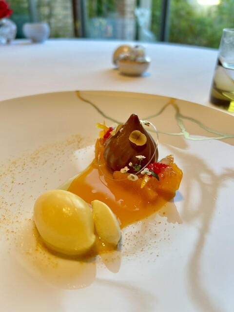 デザートもお料理同様ソースあと乗せで、お皿に注ぐとみかんの素晴らしい芳香が漂います。
