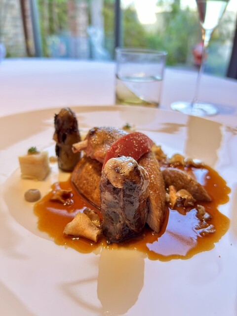 鳩の火入れは完璧で、レバーが入っていたり柿のアクセントがあったりと、一皿で色んな味わいが楽しめます。本当に美味しい。