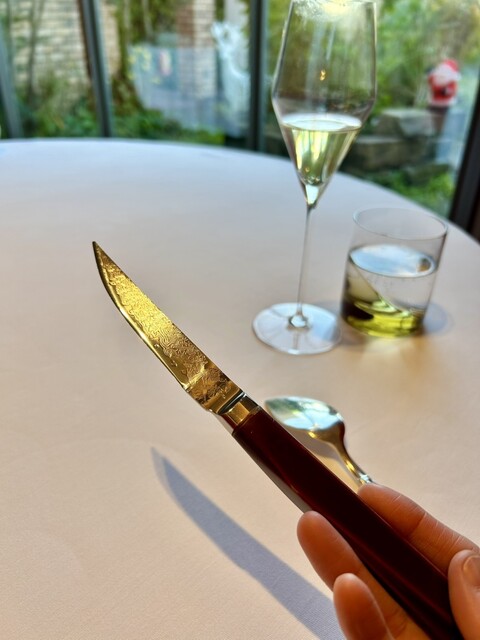 ちなみにこちらの美しいナイフは、福井の伝統工芸品。キムタクのグランメゾン東京でも使用され世界中からオファーがあるため、購入はなんと2年半待ちだとか…!切れ味抜群です。
