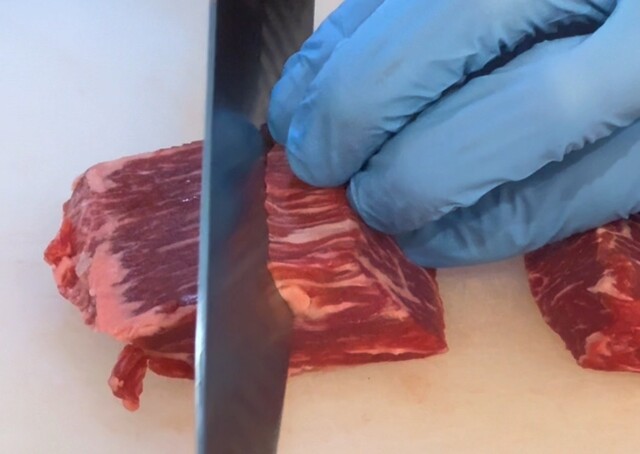 目の前でカットし