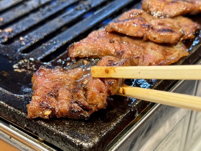 ・バラ肉は目の前で味付けまでしてくれて、オリジナルの味噌ダレで