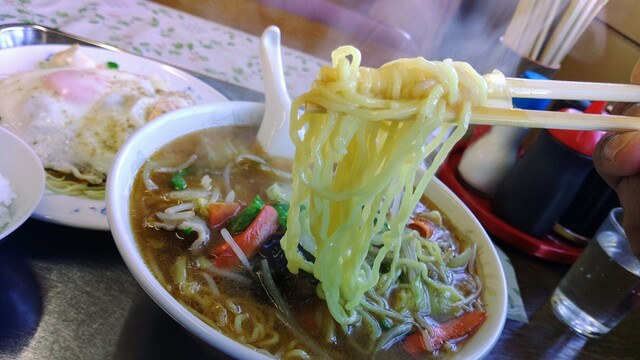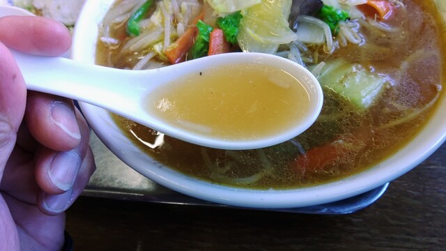 此方のお店は、炒め野菜が乗っているタンメンです。