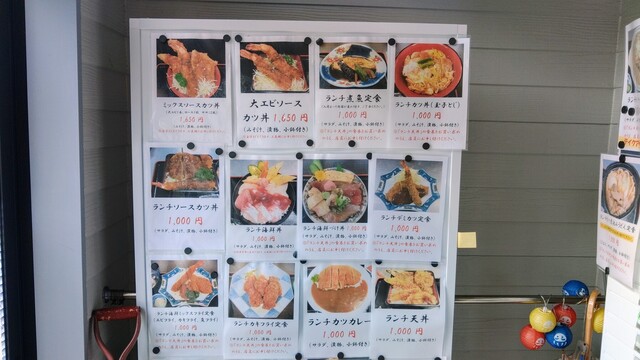 例えば、ランチソースカツ丼 エビフライ、ロースカツ