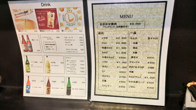 おまかせ焼肉(ワンドリンク、お肉の盛合せ) 2000円