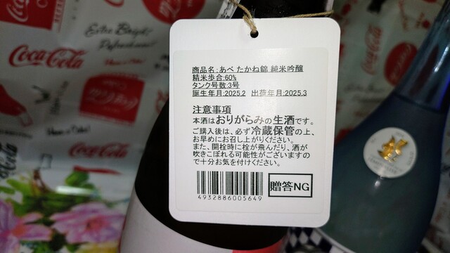 あべ 純米吟醸 たかね錦 タンク3号 720ml 2,200円 (税込 2,420円)
