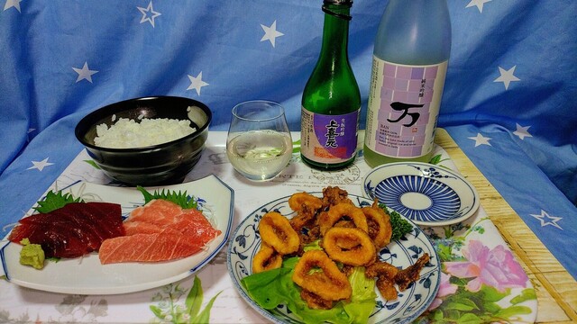 今日の夕飯は、まぐろといかの刺身で ・:*ε( ε ˘ω˘ )э ᔦ๑° ꒳ °๑ᔨ