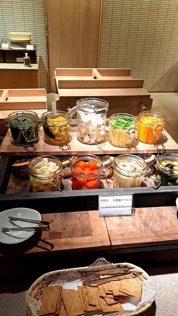 豊富な種類のピクルスや、選べる小鉢、大きなエビの天ぷら、ローストビーフ、お造り、ハマグリ、漬物、刻み鯵はリピートしました