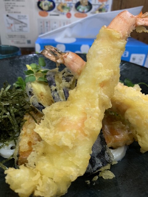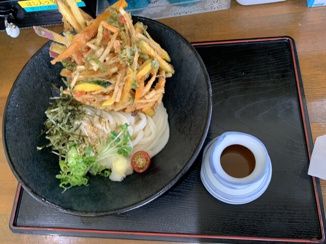 もちもち麺が食べたくて相方と妹と3人で今回はあったかいうどん大海老天ぷらうどん 天ぷらは揚げたてで熱々うま あったかいうどんと冷たいうどん麺のもちもち感は冷たいほーのが感じるかな